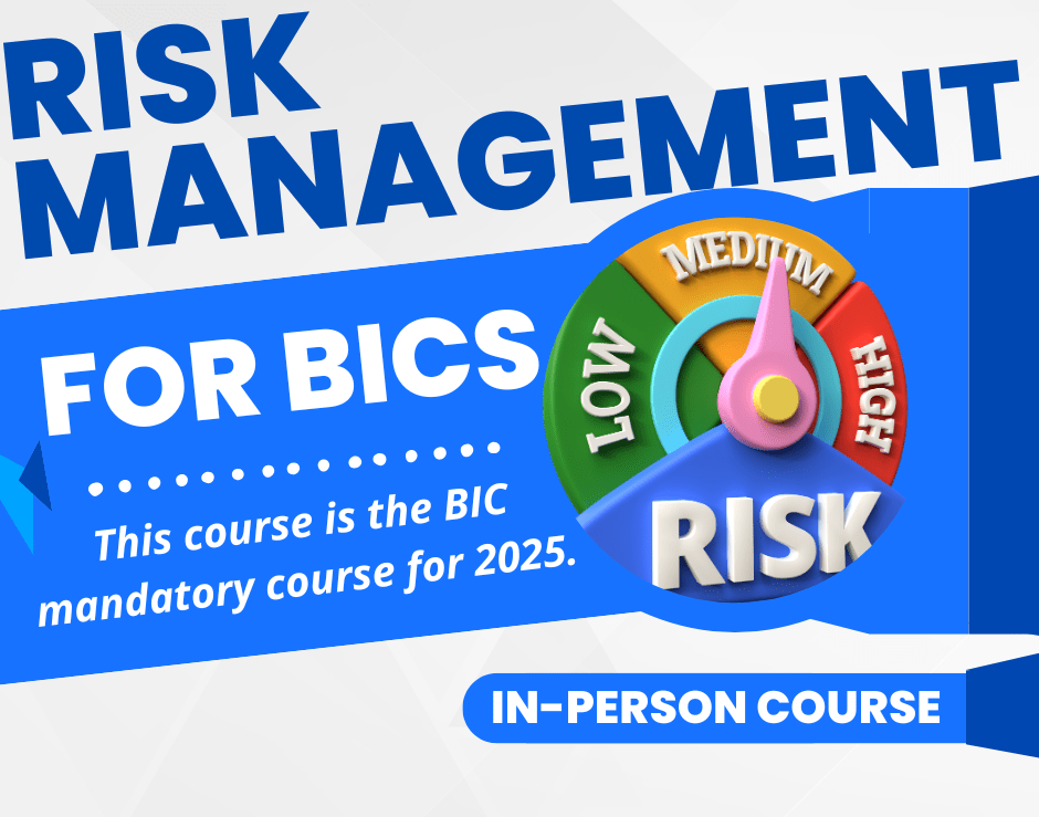 This new course gives four hours elective continuing education credit and meets the mandatory requirement for BIC’s renewing in 2026. As the title states, the focus is on risk management. The following topics are covered: