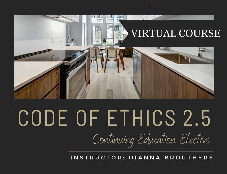 Credit Hours: 2 Hour CE Elective + NAR Code of EthicsCourse #: DEE 3047Instructor: Dianna Brouthers